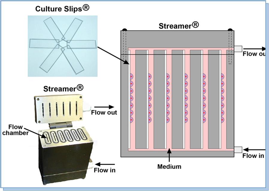 5、Flexflow單通道平行板流室系統(tǒng)提供流體切應(yīng)力同時抻拉細(xì)胞 ![]() flexcellFlexFlow顯微切應(yīng)力加載設(shè)備(SHEAR Stress device) FlexFlow系統(tǒng)包括: 保證細(xì)胞在不同水平恒流或生理剪切力作用下仍保持黏附,在研究中得到了廣泛應(yīng)用。用蠕動泵(peristaltic pump)或注射泵(syringe pump)提供瞬態(tài)剪切力使平行板流室的入流管和出流管之間產(chǎn)生壓差,使流室內(nèi)細(xì)胞受到均勻,震蕩或脈動剪切力的作用。 平臺總結(jié):