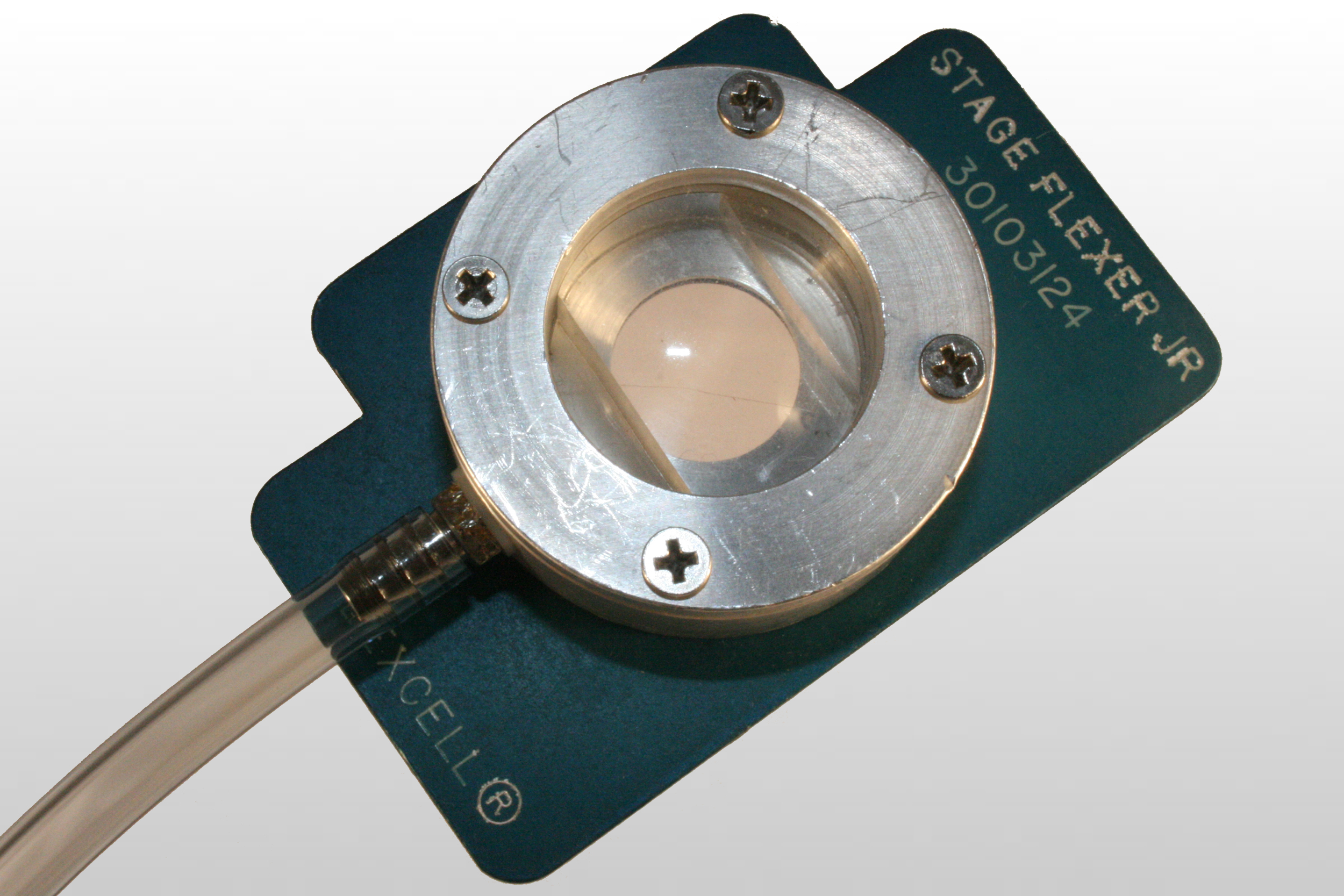 StageFlexerI®设备中的细胞可以在标准或倒置显微镜下观察。 使用标准显微镜时,StageFlexerI®设备底部的开口可照亮膜表面,而使用倒置显微镜时,可为大多数10-40倍物镜提供间隙。
