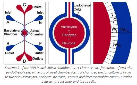 In the SynBBB assay, which includes a tissue compartment and vascular channels placed side-by-side and separated by an engineered porous barrier, the researchers were able to co-culture neonatal rat brain endothelial cells and rat astrocytes under physiological conditions observed in vivo. The endothelial cells formed a full lumen and exhibited tight junction formation which increased under co-culture with astrocytes. The permeability of small molecules in the developed model was found to in excellent agreement with in vivo observations.
