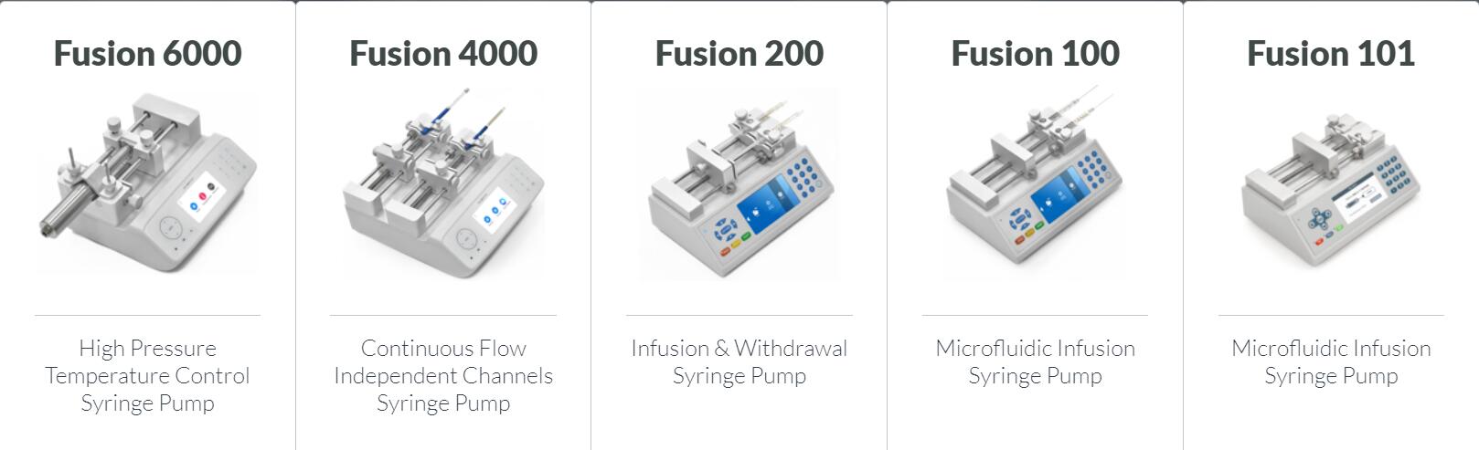 FUSION 6000高壓溫度控制注射泵、FUSION 4000連續(xù)du立通道注射泵、FUSION 100微流體輸液注射泵