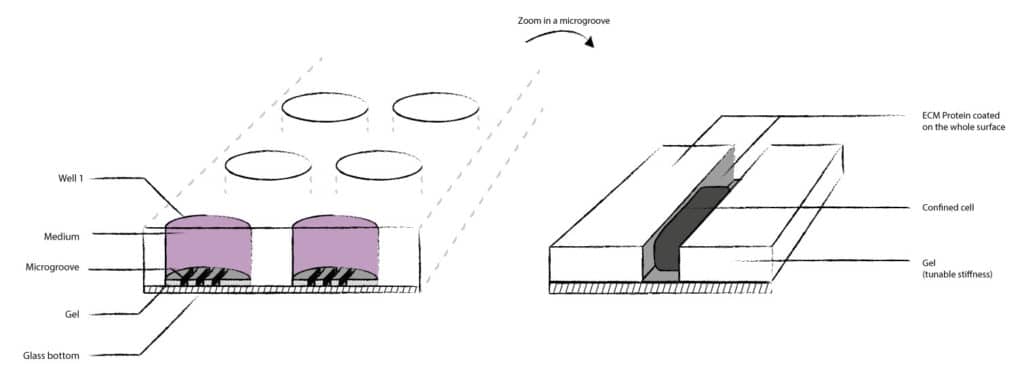 細胞在平坦或微結構化的軟3D環(huán)境中培養(yǎng),以模仿體內條件。