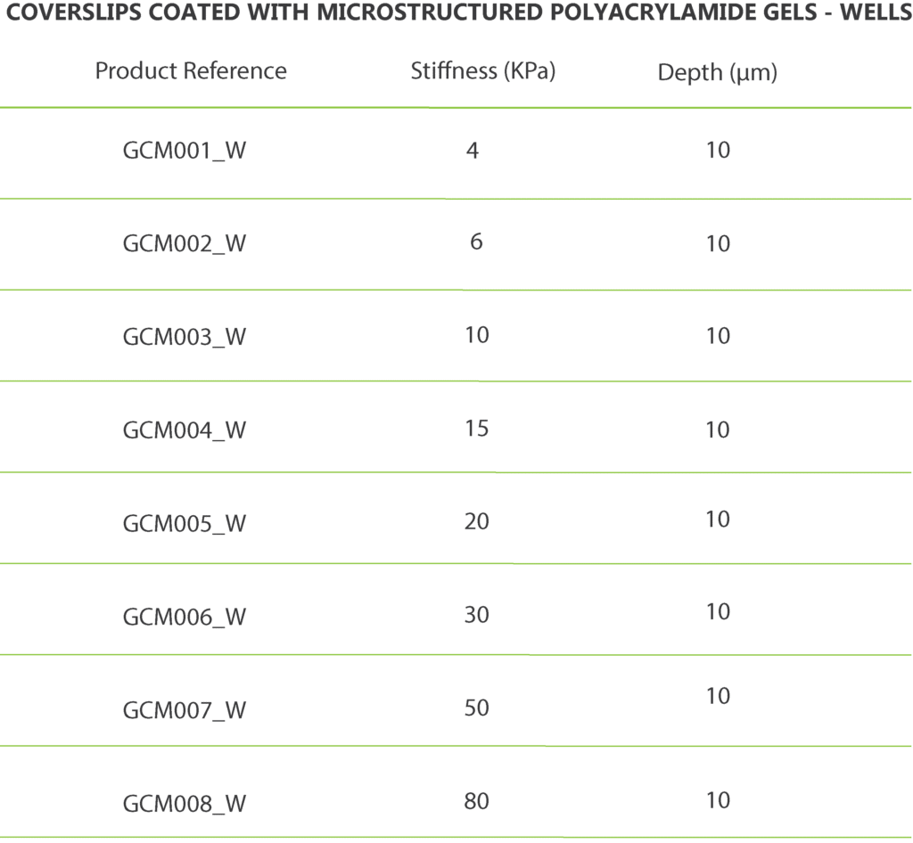 提供用于細胞培養(yǎng)的微結構聚丙烯酰胺凝膠涂層蓋玻片。