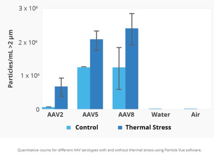 使用Particle Vue軟件對有和沒有熱應(yīng)激的不同AAV血清型的定量計數(shù)。