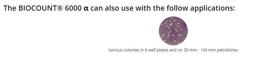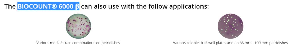 應(yīng)用于6孔板和35 mm-100 mm Petridish上的各種菌落