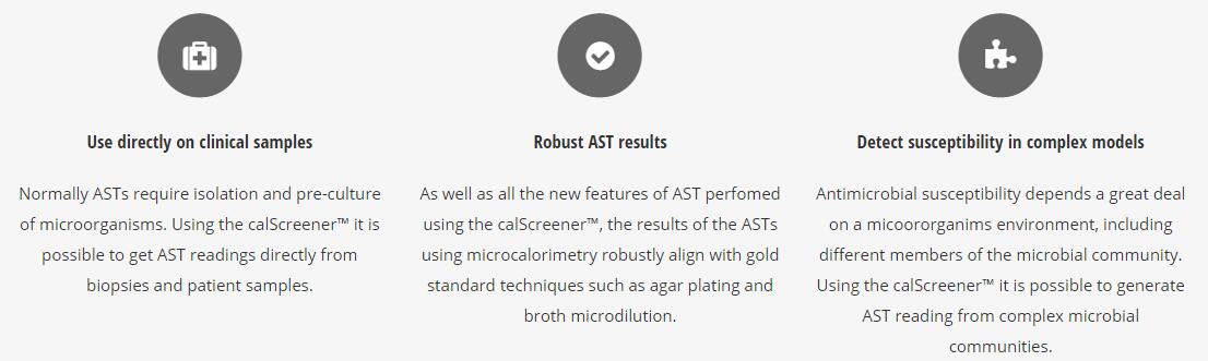 抗菌藥的敏感性在很大程度上取決于微生物環(huán)境,包括微生物群落的不同成員。使用calScreener?,可以從復(fù)雜的微生物群落中生成AST讀數(shù)。