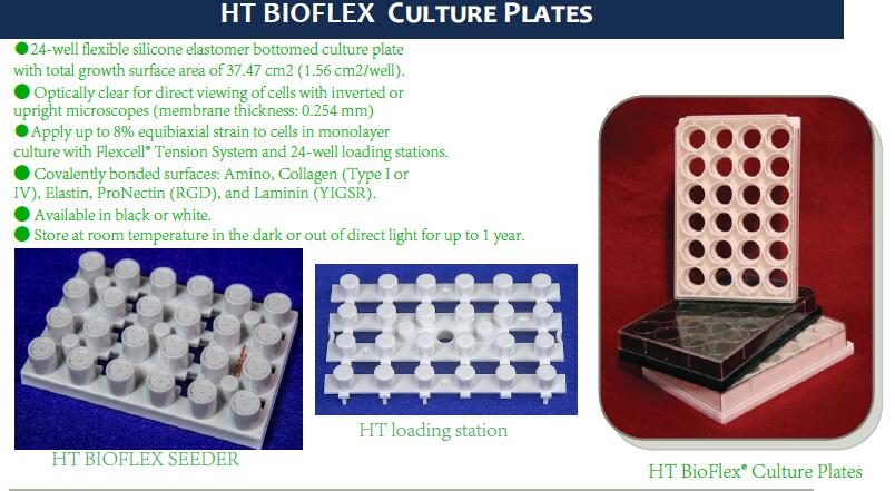High throughput flexible-bottomed culture plates used with flexercell® Tension Systems to apply up to 8% equibiaxial strain to cells in monolayer culture.
