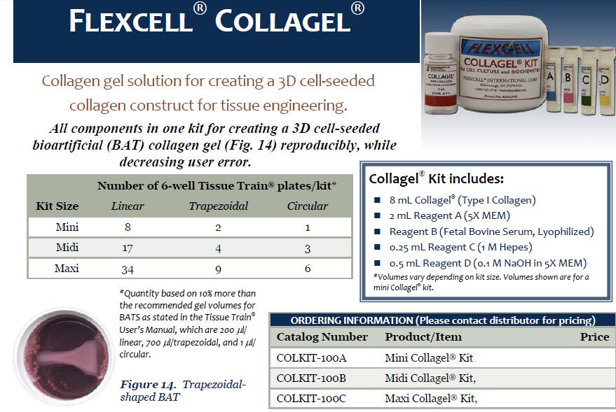 All components in one kit for creating a 3D cell-seeded bioartificial type I collagen gel (see Fig. 2 below).
