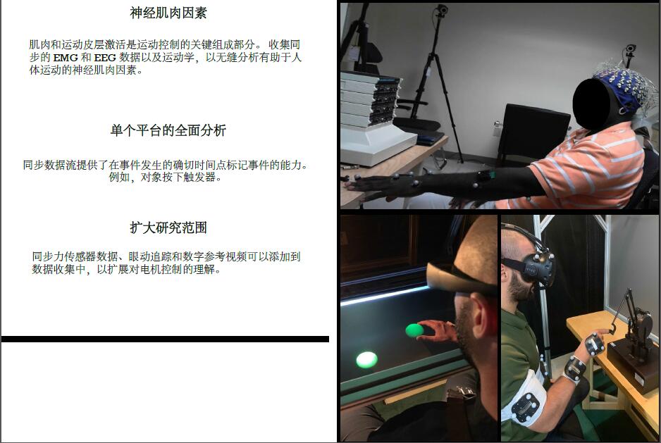 ●使用測力臺、手傳感器、EMG、眼動追蹤、視頻、EEG、虛擬現(xiàn)實、觸覺和模擬數(shù)據(jù)同步采集運動數(shù)據(jù),簡化采集和分析。