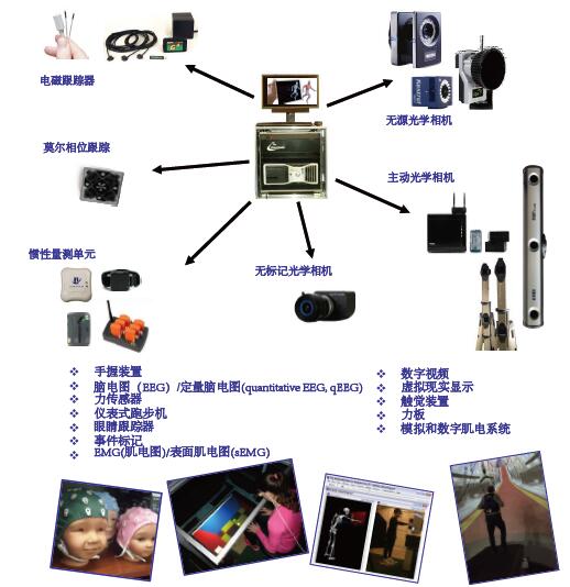 根據(jù)需求配置各種運動跟蹤器、EMG(肌電圖)、測力臺、手傳感器、EEG腦電圖、