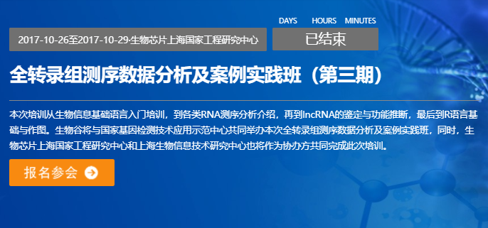世聯(lián)博研(Bioexcellence)與國家基因檢測技術(shù)應(yīng)用示范中心共同舉辦本次全轉(zhuǎn)錄組測序數(shù)據(jù)分析及案例實(shí)踐班,生物芯片上海國家工程研究中心和上海生物信息技術(shù)研究中心也將作為協(xié)辦方共同完成此次培訓(xùn)。.....